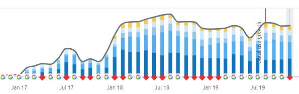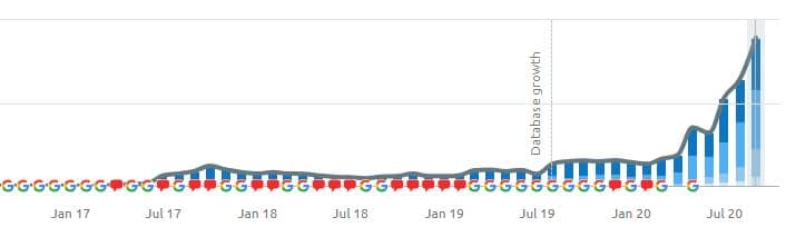 Professional Services business, December 2019: The graph below shows the number of keywords this site was ranking for early in 2019 – and how that number made an impressive jump over the next few months. In this particular case, the client chose a one-off SEO Boost package (silver).